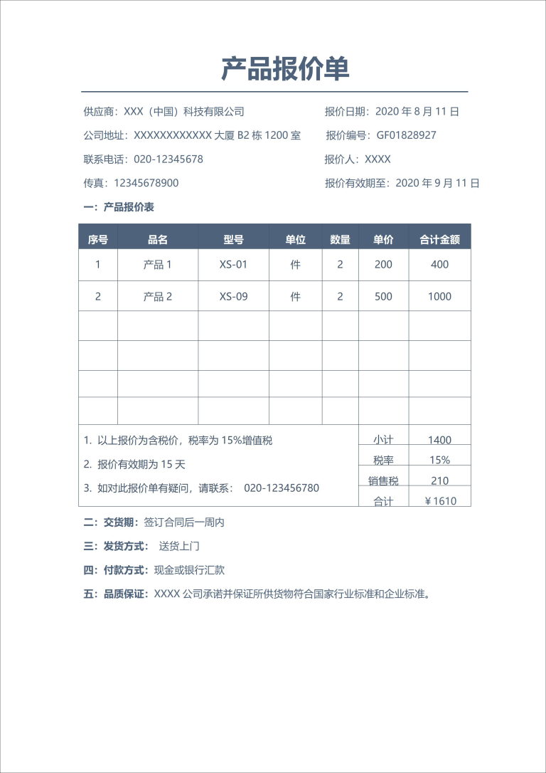 产品报价单