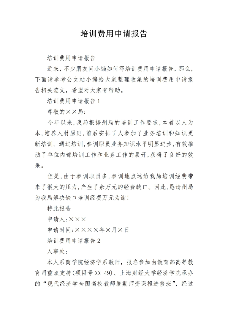 培训费用申请报告