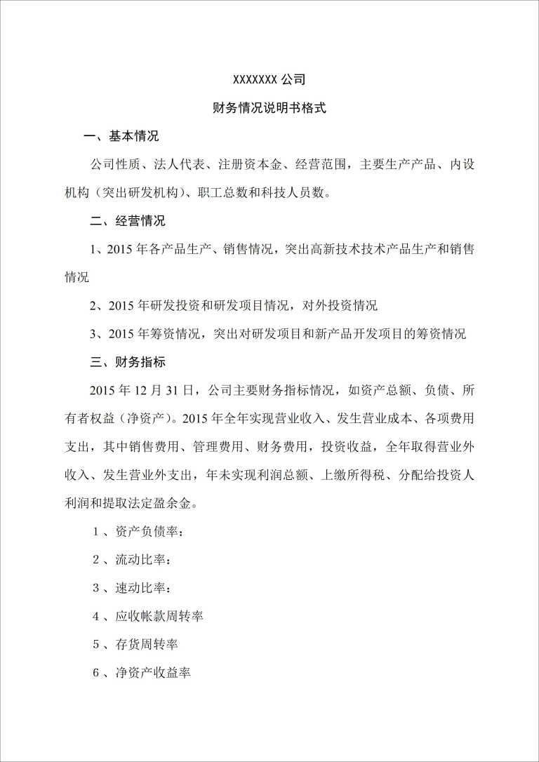 财务情况说明书格式
