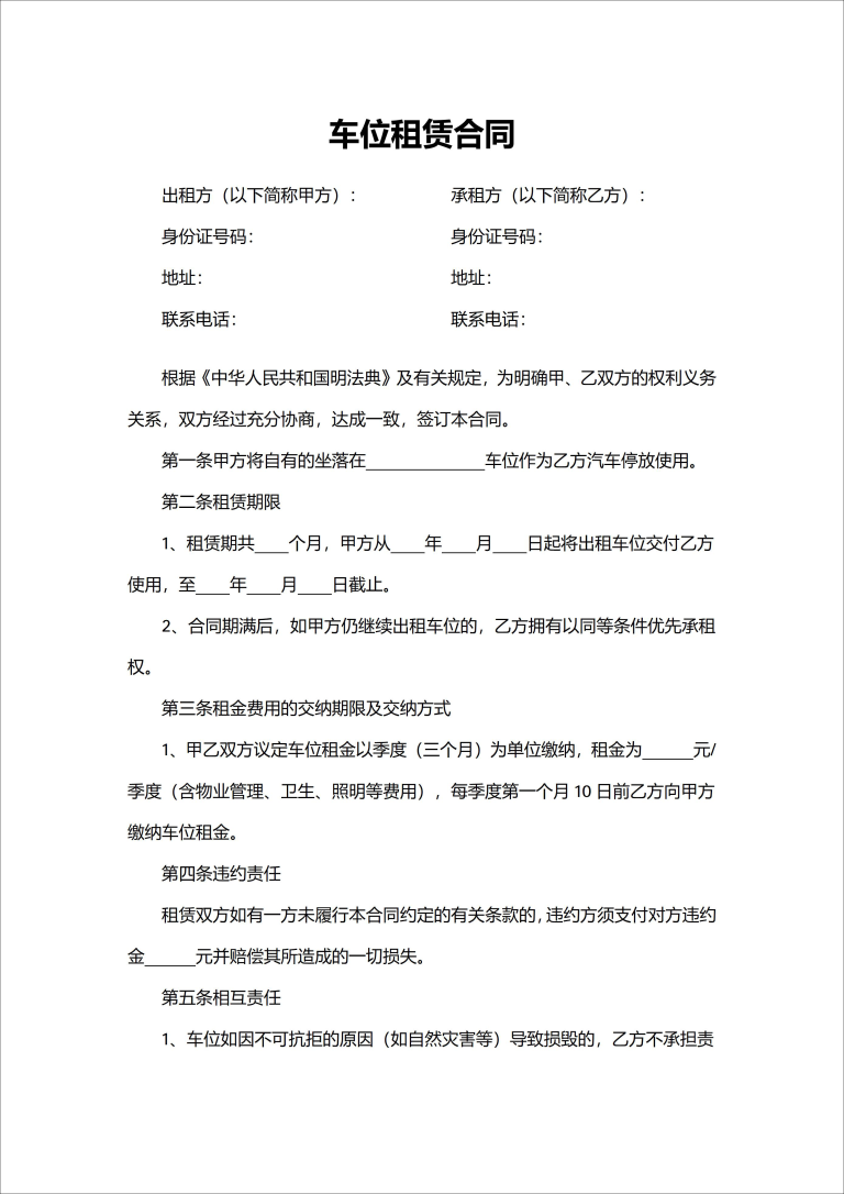 车位租赁合同