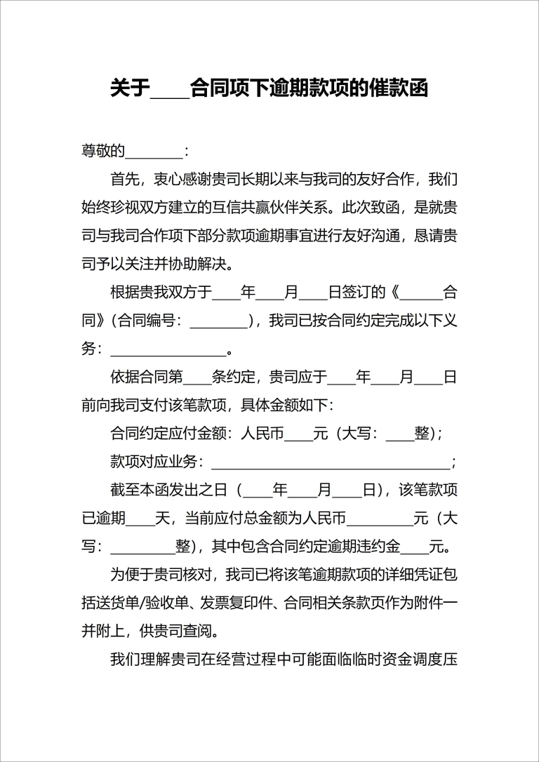 逾期款项的催款函